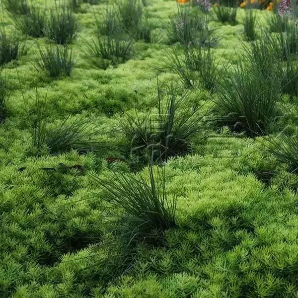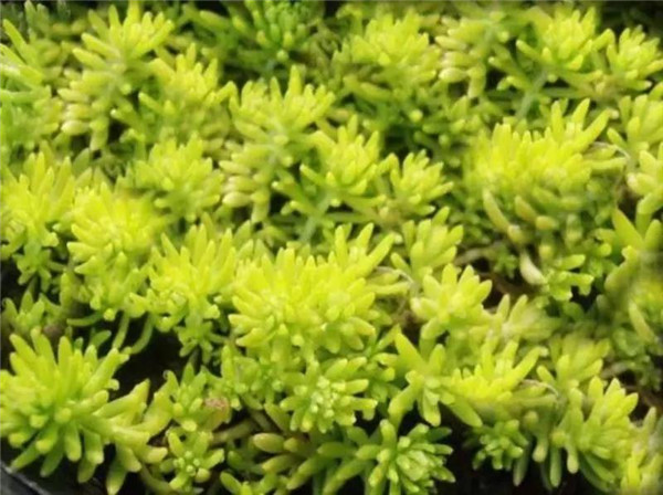 金葉佛甲草為景天科植物,為佛甲草一變種。耐旱性極強,植株低矮,匍匐地面生長(cháng),高10至20厘米,花期多在5至6月,開(kāi)金黃色花。葉片金黃色,枝葉生長(cháng)茂盛,覆蓋地面能力強,速度快,其繁殖特別容易。多選用扦插,落地即生根,幾乎能扦插成活,每株一年能繁殖數百株。