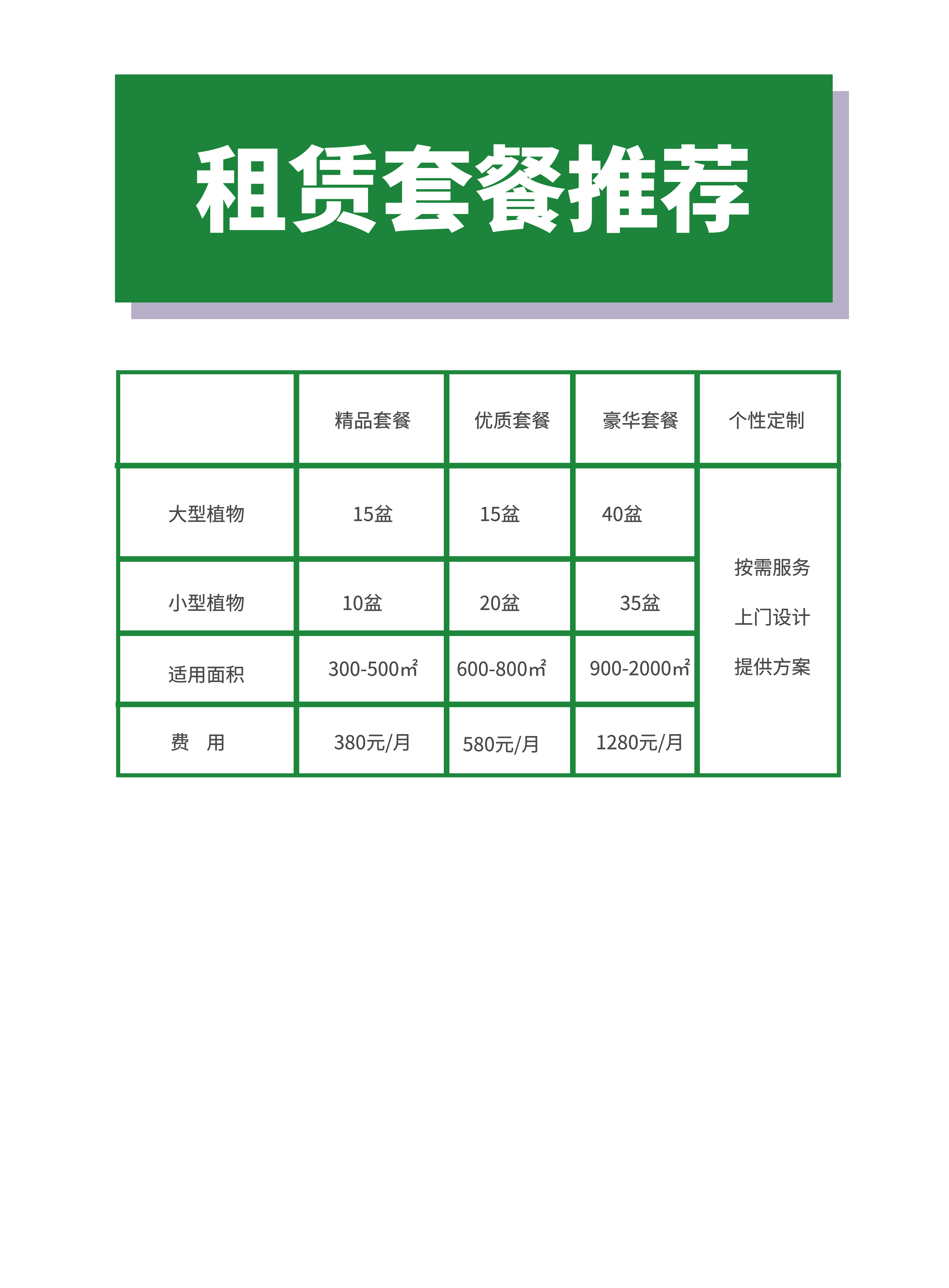 我們一般在在確認好辦公地址,區域面積,預算,以及需要定期養護的植物租賃需求后,立即為其定制以大型植物、中型植物、小型植物、觀(guān)花花卉等為主的租賃方案。